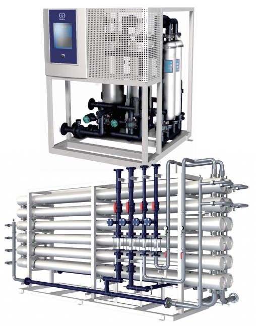 この装置は産業分野だけでなく、医療用水、特に注射液から細菌やウイルス等を除